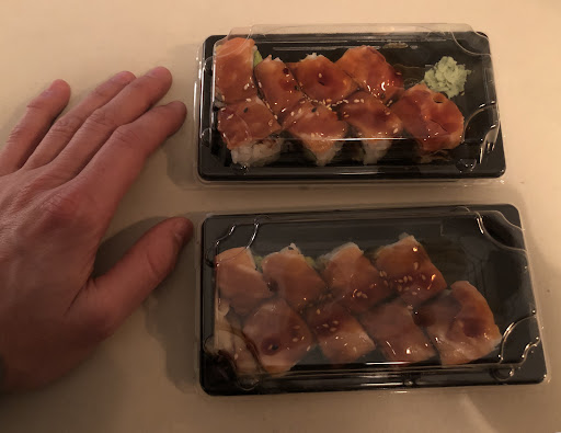 One of these boxes, ordered from UberEats containing an 8 piece roll, cost €11.99. And to order wasabi and ginger, it was a separate cost (1€). How so many rave reviews continue to claim this place serves large portions is beyond me. Maybe they are more generous in the restaurant itself?