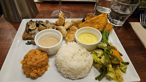Read moreVegetarian restaurant which seems to specialise in lots of fake meat/fish dishes using soya, seitan etc. Some vegetarians aren't really into that sort of thing, but I quite like the textures of these kinds of foodstuffs, as well as the reassurance I'm actually getting a decent helping of protein without lots of fat. I had the vegetarian "chicken" - kind of nuggets I suppose. My wife had the vegetarian "fish" which I think was a daily special. Both dishes came with similar sides of quinoa and some kind of lentil ?) puree, plus a few sauteed potatoes. I wasn't too keen on the quinoa, but the rest of it was fairly good. Also enjoyed the ocean salad (with vegetarian "shrimps") as a starter - we shared this, it was pretty large.