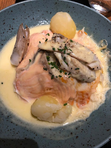 (+) Choucroute de la mer nageoires et écailles généreuse mais les poissons sont surcuits.