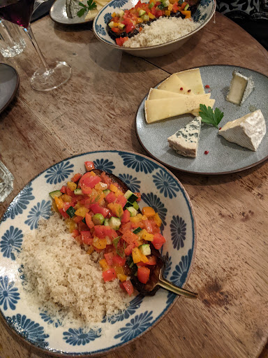 We had dinner here tonight. The place is small, customers are "not" that-kind-of-tourists: they don't shout, they seem to know what to expect from a spot like this, they are aesthetically pleasant. The wine list is relative short, but fair. Very fair: some bottles are priced as "internet". We got a 2014, very good, rosee de seignee champagne at a reasonable 60something€. Food is kind of a tapas, side-stuff for wine. Good, alternative, mix of Euro-middle-far-East-fusion kind of stuff. We got aubergine-quinoa-vegan dish, mackerel with vegetables and a wonderful beef-tataki. The guys are welcoming, nice, even if they wonder if you ask for a seau à glace, as they think that wine temperature is kind of an absolute, objective stuff. I mean: I'm sorry, but I like it cold, very cold....