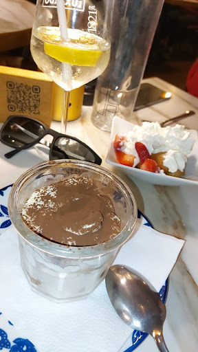 Conclusion : Ă fuir absolument. Attrape touristes (le patron nous avait dit qu'ils Ă©taient plein a craquer alors que la terrasse ET la salle Ă©taient vides) avec un service atroce, Ă la tĂȘte du client, qui refuse de servir si vous ne commandez pas assez. (oui oui, mĂȘme si vous ĂȘtes 8 personnes...