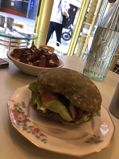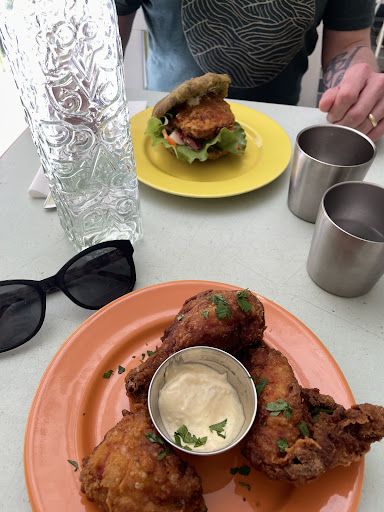 good food. we had the fried chicken and sweet potatoes (excellent). was not a fan of the vegetarian sandwich which was basically a seared oyster mushroom on a bed of cabbage and carrots on a bun. was just lacking flavor and not enough mushrooms. ambiance was nice with the mailboxes hanging on the wall. Mathilde and her husband opened this spot 6 months ago and I hope they...