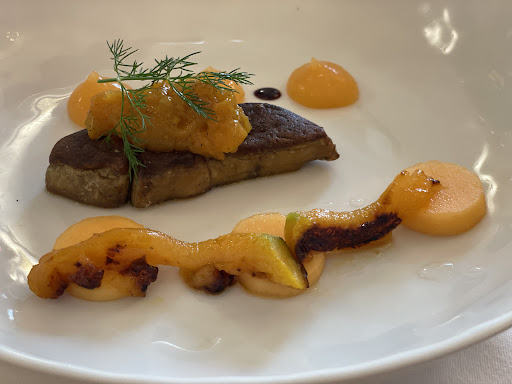 Read moreBelle découverte que ce restaurant dont nous avons profité entre amis samedi soir. Doux moment au calme, sur la terrasse, à profiter d’une coupe de champagne de qualité, au soleil descendant, où nous avons pu tranquillement découvrir la carte et faire nos choix pour le dîner (juste dommage que les apéritifs ne soient pas accompagnés d’un petit accompagnement salé). Belle salle de réception, magnifique cave à vin murale à la façon d’un tableau XXL qui propose des vins de bonne qualité. Accueil et service très agréables, repas qualitatif et plutôt savoureux, belles présentations à l’assiette. Les portions ne sont pas énormes mais suffisantes pour un dîner. Bien surveiller la cuisson du foie gras poêlé un tout petit peu trop cuit…). Cette nouvelle équipe me semble en bonne voie pour atteindre la note de 5 étoiles. Par ailleurs, l’endroit se prête parfaitement...
