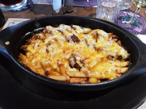 Read moreAu départ ça part mal on nous dit que l'on peut m1nger dehors , on prend place dehors on prend un verre et on nous dit qu'il faut aller dedans pour manger. En attendant notre commande on voit un type à lunette le seul qui fait du vent et pas habillé en noir. Il va à gauche à droite il brasse l'air quoi, c'est marrant, moins pour les serveurs. On s'installe dedans on commande notre poutine chacun très bon bien servi, par le serveur correct aimable. Tout se présente bien dans ce restaurant sauf un truc, faut que le gars à lunette arrête de brasser de l'air il ne sert que de ventilateur dans cet etablissement, si c'est le patron ben qu'il reste en dehors du service. Ps: Comme je n'ai pas la possibilité de répondre à vos arguments, je tenais quand à vous féliciter de votre réponse, mais je vois aussi en lisant les autres avis que lorsque l'on attaque le patron il n'admet jamais être fautif et trouve toujours une parade. Je vous ai vu travailler dehors, puis dedans, et à part ramasser une cuillère par ci ou par là, laissez faire vos, serveurs, qui, je pensent sont plus adeptes à le faire et mieux, Monsieur le patron rester à votre place de gerant, vos, serveurs et barmans ne s'en porteront que mieux, faite leur confiance. Et surtout veuillez à accepter les réflexions et les avis des gens qui viennent chez vous même que pour 2 h comme vous dites ce sont eux qui...