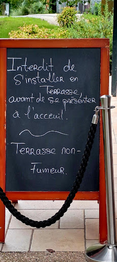 j'aurais souhaité un minimum de courtoisie. Je ne suis pas en enfant. J'ai littéralement été envoyé au coin... a 1 mètre de ma table, hors terrasse, avec le sentiment que la serveuse ait envoyé le grand costaud a la grosse voix pas amicale