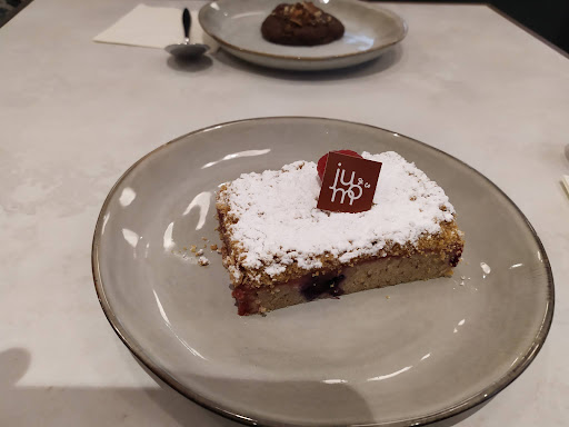 Ce fut vraiment une énorme déception : nous avions réservé et annoncé la présence de deux chiens, et on nous a installés à une mini-table juste à l'entrée, alors qu'il y avait d'autres tables plus confortables pour nous qui sont restées libres. La décoration est spartiate et inconfortable, l'ambiance froide, et on vous présente d'abord une carte des boissons très complète, notamment des vins, mais on vous cache la carte des plats. On vous demande ensuite si vous savez ce que signifie le mot BRUNCH, et ce qui vous est servi sous ce nom n'est même pas un petit-déjeuner correct. La carte des vins devient alors plus que superflue. En fait, un brunch devrait être un mélange entre le petit-déjeuner et le déjeuner, généralement servi sous forme de buffet, car les préférences des clients varient considérablement, surtout au petit-déjeuner. Ici, on sert à table, à prendre ou à laisser, une quantité énorme de nourriture rassasiante, du pain, des brioches au caramel, un énorme croissant au fromage et au jambon qui suffirait déjà comme déjeuner, accompagné de fromage râpé très fin d'origine inconnue avec de la croûte et du jambon séché sur les bords, du jus d'orange en bouteille et une (1) boisson chaude par personne. Il faisait froid comme dans une chambre froide, et lorsque j'ai demandé à ce que la climatisation soit éteinte, elle a été réglée à 21,5 degrés au lieu de 21, sous les protestations du personnel. Nous en avons eu assez, nous avons renoncé à continuer à nous restaurer, et le maître d'hôtel nous a facturé sans autre forme de procès le prix total de 58 euros. Il en aura bien besoin. Cela nous a gâché tout le dimanche, et on se demande après coup s'il s'agissait d'une tentative d'agression physique ou d'une pure...