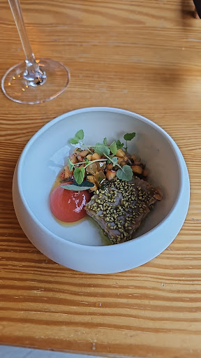 Read moreL'attente un peu longue entre les plats (certainement petit cafouillage, les personnes arrivĂ©es aprĂšs nous ont mangĂ©s avant nous) a Ă©tĂ© compensĂ© par l'amabilitĂ© du serveur et la dĂ©licatesse des plats. Tout Ă©tait vraiment dĂ©licieux. Mieux vaut cependant ĂȘtre gourmet que gourmand, les parts sont assez petites. Les gros estomacs (mon Ă©poux par exemple đ) auront l'impression de ne pas avoir assez mangĂ© en sortant. La petite serveuse nous a demandĂ© a chaque fois si nous avions apprĂ©ciĂ©, et devant notre affirmation et nos assiettes bien vide (essuyĂ© au pain par ma moitiĂ© qui avait faim đ€Ł et qui trouvait ça bon), en regardant nos assiettes, nous a rĂ©pondu "ça se voit"! Pas mĂ©chant mais pas trĂšs dĂ©licat. Il n'est pas d'usage d'essuyer certes, et pas plus de le faire remarquer đ. Cependant tout s'apprend, elle est jeune et cela nous a fait sourire et ne nous empĂȘchera pas de revenir. En tout cas, nous avons vraiment apprĂ©ciĂ© les mĂ©langes si fins et...