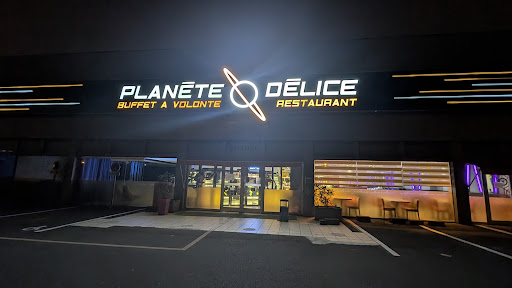 Read moreCe restaurant est très grand, bien décoré (style un peu steampunk) et propose une cuisine très variée et d'assez bonne qualité. Si vous en avez assez des restaurants "à volonté" qui propose juste de la nourriture asiatique, alors Planète Délice vous conviendra : vous y trouverez de nombreux plats plus traditionnels comme de la pizza, des pommes de terre sautées, de la bavette, etc... Il y a aussi un espace wok et plancha où un cuisinier se chargera de griller vos viandes, poissons ou crustacés. La proposition de plats est assez grande pour que chacun y trouve son bonheur. La qualité de la nourriture est très honnête. Ce n'est pas de la grande cuisine, mais c'est bon. La grande salle permet de ne pas se sentir trop à l'étroit mais l'endroit reste un peu bruyant. On s'en rend compte surtout en sortant, lorsque le bruit de fond disparaît. Le personnel est très souriant (tant qu'on devine vite que cela doit être une consigne de travail) et s'occupe rapidement de vous. Il y a de nombreux serveurs qui parcours la salle et vous serez rapidement débarrasser de vos plats sales ou rechargé en eau. Il y a même un petit robot de service qui viendra vous apporter vos cocktail à table (solution discutable, mais acceptable lorsque l'on voit le nombre de personnes déjà employés...) ce qui ravira certainement les enfants . Et puisque nous parlons des plus petits, il y a au fond du restaurant un espace de jeux où les enfants pourront se défouler pendant que les parents finissent tranquillement leurs repas. Il y a d'ailleurs des tarifs réduits pour les enfants de 4 à 9 ans (sur présentation d'un justificatif). Pour terminer, les sanitaires sont propres et d'un style très steampunk assez cool. Nous avons passé un bon moment dans ce restaurant, en famille, et nous y retournerons certainement...