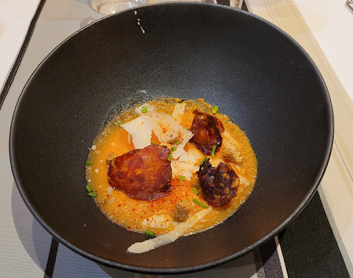 The food was very good. I recommend in particular the “gaufre a la courgette” and “effiloché de porc 20h” and “cannelé” which really stand out. The porc is flavourful, soft and has a very slight caramel aftertaste; it is truly excellent. Has to be among my top 3 or top 2 of best porc I have ever eaten in my life and I go to restaurants a lot, all over the world.