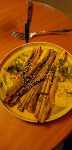 We had a fantastic experience at Baston, unfortunately we do not speak French but luckily the owner speaks English. All the tables were booked but we offered to sit outside, it was chilly but manageable and very happy we persevered. The owner came out to explain how everything is made, help my husband choose a unique natural wine and overall was very patient with us. It was also wonderful to see him working just as hard as everyone else at the bar and kitchen. The menu is limited however everything is made to a high standard with fresh produce, the pizza dough is proved for 72 hrs, so gut friendly which is great for those of us who suffer with breads/gluten issues. We started with a small plate of roasted leeks with gorgonzola and pistachios (excellent) and then our pizza; amazing flavour, simple but so delicious. This was just a trip through Perpignan but would definitely consider stopping in again...