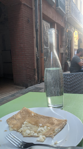 Quan vem demanar taula el noi ens va comentar que hauriem d'esperar mitja hora per menjar les galettes, vem acceptar pensant que de mentres fariem un vinet o quelcom per picar. Així que agafem taula, n'hi havia més d'una de lliures, però la cambrera no ens la neteja ni ens atèn. Cada 5 minuts li anava aixecant la mà per si ens podia pendre nota, ja sabiem que tardariem en menjar però que menys que demanar al client que voldrà per menjar i beure, no? Doncs res... fins passats casi 40 minuts no ens pren nota, demanem la galette i la beguda i ens porten en pocs minuts dues galettes delicioses però la beguda me la van dur un cop ja només em quedava una mossegada.