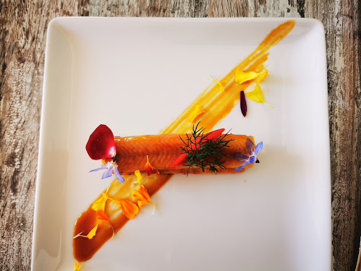 L'ABSIX has a set mystery menu that you only find out when they bring out each dish. There are several courses and mini-dishes that are presented. They are all gorgeously presented and delicious, in my opinion! There's always a mix of colors and textures. They explain all the dishes (but we were not fluent in French; they attempted in English, which is appreciated) as they come out.