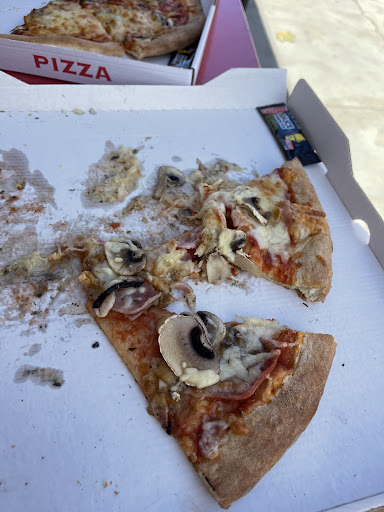 Op mijn pizza werden de champignons vergeten. Nadat ik dit had aangegeven werden er wat champignons opgegooid en werd dezelfde pizza opnieuw in de oven geschoven. Resultaat: totaal mislukte pizza met vrijwel rauwe champignons. Alle kaas zat hierdoor ook aan de doos geplakt.