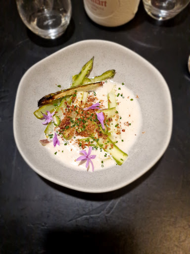Quant à la cuisine, on a été agréablement surpris par la qualité et la présentation des plats proposés. En entrée un œuf parfait avec des asperges, une assiette aussi belle que délicieuse puis le plat,un délicieux agneau parfaitement cuit acompagne d'une purée de carottes semoule et une sauce merveilleuse. Quant au dessert, juste parfait, île flottante revisite saveur citron avec une belle pièce en sucre qui rajoute du croustillant. Le tout parfaitement assaisonné du début à la fin, un équilibre de saveurs et textures très bien maîtrise.