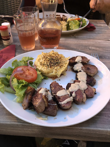 We are none meat eaters but do eat fish. The daily menu had no choice, only meat, for the main course. There were also four menus on offer on the card, all with meat. There were only two options for vegetarians: a veggie burger (too much bread, as it comes with bread and chips) and assiette vegetariene, we opted for that. When it arrived it looked ok but the vegetables (carrots and green beans, probably tinned) were overcooked and mushy, the chips were also soft and tasteless. Also included pistoue and a lot of green salad. This is not what we expect of French cooking, even at a relatively basic price. They should consider offering a wider choice for none meat eaters. We will probably not be...