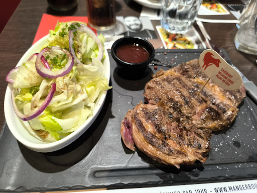 Potable. Cuisine correcte. Service convenable et ambiance limite. Par contre, pas très claire sur leurs prix appliqués. Il fut un temps où le client pouvait demander un mixte de garniture... Apparemment, leur siège maîtrise tout, et en particulier leur carte qui n'est pas claire avec la législation et en matière de communication. Pire, le patron m'indique devoir faire un mail à leur siège à Paris ! Vous êtes patron de restaurant ou vous êtes juste un responsable de centre de profit ? Il n'est pas indiqué que c'est une seule garniture au choix et que toute garniture en supplément, est payante. Aucune mention de ce type sur leur carte ! Il est indiqué la garniture seule qui est payante .... Cela à tjrs signifié lorsque l'on ne prend pas de plat complet.. le paiement de l'assiette ! Bref, c'est une question de français et surtout de clarté vis à vis du consommateur. Pour finir, on commande en accompagnement de la salade verte, on obtient de la salade iceberg plutôt jaunâtre. A ce compte, il n y a plus qu'à servir de l'endive à la place de la salade verte ! Aux autres consommateurs de juger ... Moi, j'y remettrais pas les pieds, c'est...