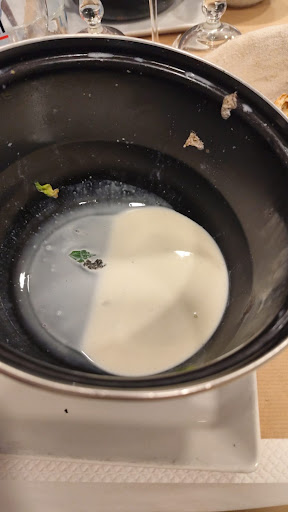 Côté service, par contre, c’est là que ça coince : • Très long, pas de prise de nouvelles pendant le repas, pas de “tout va bien ?” ou “vous avez besoin de quelque chose ?”. • Personne ne propose café ou digestif à la fin. • Le sourire ? Optionnel visiblement. • Les frites servies avec les moules étaient pas assez cuites, genre blanche. • Pas de cendrier malgré la demande. • Carafe d’eau servie au début, mais pour la faire remplir après… faut attendre longtemps. • Et deux fois, on nous a dit “on attend que monsieur ait fini” pour débarrasser son assiette. Franchement ? C’est gênant, comme si on le pousse à finir plus vite.