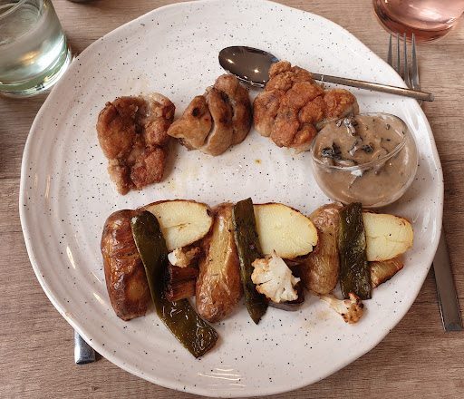 Points positifs : la décoration, les tables espacées, les toilettes nickels, le serveur et la jeune serveuse sympathiques