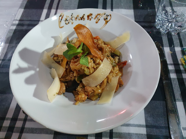 Based on reviews, and a long 16 hour travel day, we quickly decided to have dinner here. Frankly the food was mediocre at best.