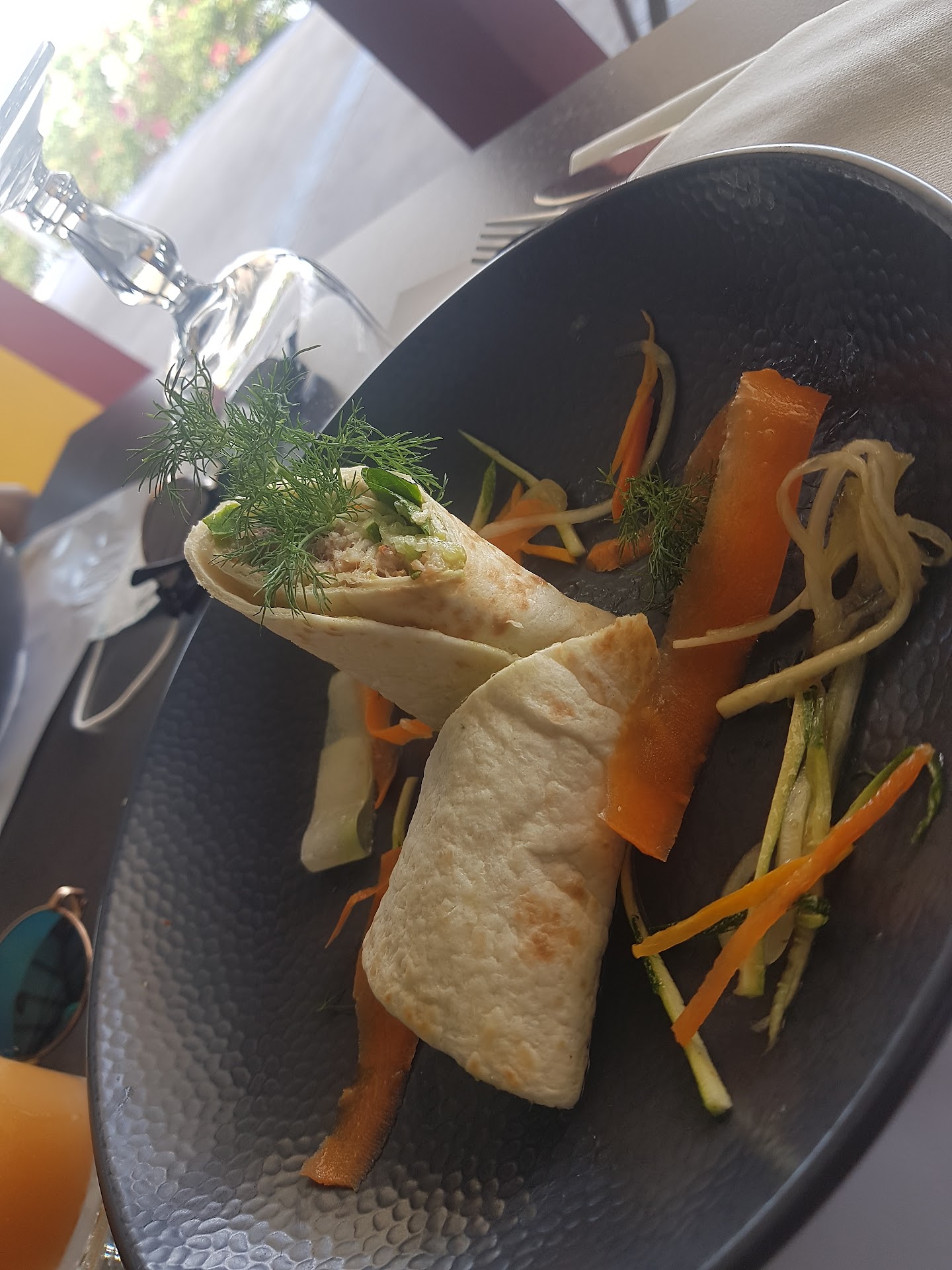 Nous avons été très déçus avec une situation qui c’est dégradée de jour en jour du 10 au 14 mars: La qualité de la restauration : plat froid, pain pas cuit, semoule pas cuite, poisson sec, accra sans pratiquement de morue, peu de choix, plus d’assiette, plus de pain et pour finir un morceau de verre dans la salade de fruit ! De plus, les ingrédients sont de qualités basiques et ne valent pas les 30€ du buffet. Le service : le personnel court partout, est débordé, vite dépassé par les commandes de boissons gérées soit de tête, soit sur carnet papier, et ensuite une facturation individuelle papier format A4 d’un autre temps, avec double signature du client + inscription de son nom suivant le personnel. Ce système archaïque des années 70, chronophage, et la mauvaise organisation stresse le personnel qui ne dit même plus bonjour. Les boissons : les 3 vins rouge, blanc et rosé en carafe sont de véritables piquettes, acide et amère, là aussi d’un autre temps, que l’on ne rencontre plus dans aucun restaurant actuel de base. Nous avions essayés de venir aussi bien en début de service, milieu ou fin de service mais la situation était identique. Nous avons cependant remarqué une amélioration de la qualité du service à partir du 15 mars, apparemment un changement de management et un début d’affectation de service par secteur.
