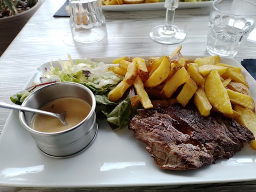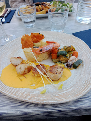 Read moreLa cuisine est correcte, le lieu est très agréable et le premier serveur qui s'est occupé de notre table était super sympa. Les entrées étaient bonnes. Nous avions un peu froid donc nous avons demandé de changer de table pour être à l'intérieur, ce qui n'a pas du tout plu la jeune serveuse qui était très désagréable et nous a laissé voir son mécontentement, en jetant avec agressivité les couverts pour dresser la table. Nous étions très gênés par la situation, ayant l'impression de déranger. Une serveuse plus âgée a rigolé en se moquant de nous car nous avions froid dehors, nous étions d'autant plus gênés. Nous avons quand même changé de table et les plats sont arrivés, c'était pas super bon. Le risotto fade et sec, loin de la texture d'un vrai risotto. Les fruits de mer avaient la bonne cuisson heureusement. Le fish en chips était trop gorgé d'huile et mal présenté. Le burger était bon et les frites aussi. Nous n'avons pas pris de dessert car nous voulions partir au plus vite pour ne plus déranger la jeune serveuse, qui d'ailleurs parlaient mal au premier serveur gentil derrière le comptoir. C'est dommage car malgré quelques petits soucis de la cuisine nous avons bien aimé l'endroit et la carte, mais l'attitude des deux serveuses ne nous donne pas envie...