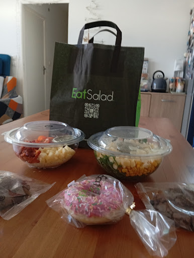 Read moreTout d'abord il faut dire que nous sommes des habituĂ©s du Eatsalad de Poitiers nord. C'Ă©tait notre premiĂšre venue Ă celui de Poitiers sud ce samedi vers 15h00. DĂ©jĂ l'emplacement ! Pfff quel drĂŽle de choix ce lieu entre MC Do et Bistrot RĂ©gent avec ce parking dĂ©jĂ pas trĂšs accessible et commun avec plusieurs enseignes. Y venir un samedi AM est assez R'n'R et y trouver une place est une loterie qui chauffe l'esprit ... Avant d'entrer dans le EatSalad ce qui Ă©tonne de suite c'est la terrasse extĂ©rieure : elle pourrait ĂȘtre sympathique avec ses jolies tables en bois mais la proximitĂ©, la vue et le bruit de la RN10 avec son flot continu de voitures d'un cĂŽtĂ© et la mĂ©ga station de lavage de voitures de l'autre rend l'endroit inappropriĂ© Ă un repas serein en extĂ©rieur ... A l'intĂ©rieur la configuration est totalement diffĂ©rente de celle de Poitiers nord et l'Ă©tablissement paraĂźt plus petit. Il est 15h00 et personne pour nous accueillir, pas grave on a le temps de choisir nos plats tranquillement. Nous n'avons pas retrouvĂ© autant de plats chauds qu'Ă Poitiers nord. Lors de notre mise Ă table Ă©tant quasiment les seuls nous avons le choix ! Top, sauf que beaucoup de tables ne sont pas nettoyĂ©es et ont encore les traces/restes des prĂ©cĂ©dents clients ... Il y a mĂȘme une table avec dessus 2 bols transparents qui servent de base pour rĂ©aliser un plat. Comment ont-ils fait pour manger ainsi ? Sans sauce cela ne devait pas ĂȘtre fameux d'ailleurs ils n'ont mĂȘme pas finis leurs bols restĂ©s donc ainsi sur la table et depuis combien de temps ? ... Sinon nos plats Ă©taient parfait RAS. Conclusion : Pas sĂ»r que nous y revenions d'autant que la concurrence d'autres Ă©tablissements dans un rayon de 500m est Ă©norme avec des accĂšs plus pratiques et des points de vue neutres ou plus agrĂ©ables. Et il n'y a pas photo nous prĂ©fĂ©rons largement l'Ă©tablissement de Poitiers nord que nous vous...