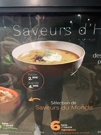 Read moreThe soup shown on the board outside and on the screens inside showed a very appetizing bowl of 4 different warm soups to fight the cold outside. Please see the first photo, showing what was to come. Once ordered the vegetable soup, I got a small plastic glass of cold puree that looked like anything but what was shown on the menu and pictures. Pls see my second picture. I asked the waitress and she said âoh yes, well this is what there is and I canât do anything about itâ. Wow, quite an answer for a customer that is absolutely deceived but the service and the product. NOT recommended at all! The pictures speak...