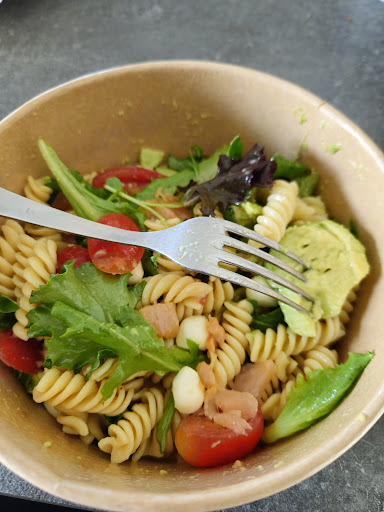 Lieu agréable pour manger, le décors est original et apaisant. Le personnel nous a tout de suite expliqué le fonctionnement. Vous choisissez votre base (pâte, salade, riz, etc.), puis votre garniture parmi un très grand choix d'ingrédients. Pour finir vous choisissez la sauce puis si vous avez choisi une formule dessert et/ou boissons, ceux-ci. Il a plusieurs formules : 4 ingrédients ou 6 ingrédients avec boisson ou dessert ou boisson+dessert. Pour les desserts il y a soit compris dedans une soupe chaude en entrée, ou un yaourt garnis (topping + coulis) ou des yaourts, mousses, glaces, salades de fruit, muffins, etc. Pour les boissons vous avez les canettes classiques ou une bouteille d'eau (sans bulles, avec, aromatisée). Si vous choisissez la formule chaude votre plat est passé au micro-onde, je trouve ça dommage pour un restaurant.. Les lieux sont propres, nous avons tout de suite trouvé une place pour s'assoir. En revanche le parking est partagé avec un autre restaurant, donc difficile de se garer. Les sanitaires sont tout aussi propre mais dès que je me suis approchée du coin (où sont les micro-onde, boissons et desserts) j'ai senti une petite odeur nauséabonde. Pour finir, le...
