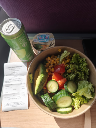 Read moreJe n’ai pas l’habitude de mettre un avis mais là c’est trop. En arrivant à la gare de Poitiers, une petite faim titille notre imaginaire. Nous rêvions d’un service aimable, tourné vers le client, un pain au chocolat bien chaud sortant du four, une boisson chaude tout cela à prix maitrisé. Quel fut notre surprise en arrivant « à gare aux papilles ». Nous avons pris 2 pains aux chocolats et 2 thés pour quasiment 10 euros. En demandant si il existant d’autres thés dans la boîte en carton servent de vieux présentoir, la dame à la caisse me répond agressivement « je regarde pas tous les jours ce qu’il y a dedans, prenez ce qu’il y a ». « Excusez moi madame, je pensais que premièrement c’était votre travail et que deuxièmement à plus de 3 euros le sachet thé lipton jetté dans un verre d’eau chaude je pouvais avoir ce que je voulais ». Encore un lieu impersonnel ou on prend le client pour une vache à lait. Si je pouvais je renommerai le lieu « gare aux cons» car le con c’est bien moi dans l’histoire. Petite revanche, j’ai cassé les chiottes en partant. Œil pour œil,...