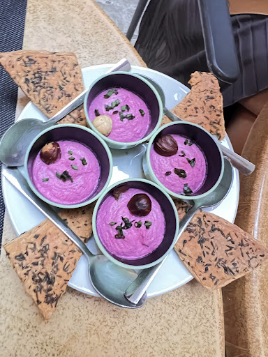 Puis, vient l’apéritif enfin pour les autres …. Nous avons dû attendre 30 mn pour être servis … enfin pour prendre la commande et encore car nous nous sommes manifestés …. on nous explique de manière maladroite que les apéritifs ne sont pas servis par ordre d’arrivée ! Et, là … vous comprendrez plus tard … les plats se succèdent à toute allure … tellement rapidement que jamais nous n’avons eu de pain !!! Nous finissons même par « doubler » ceux qui étaient arrivés après nous et qui avaient eu l’apéritif avant 😉