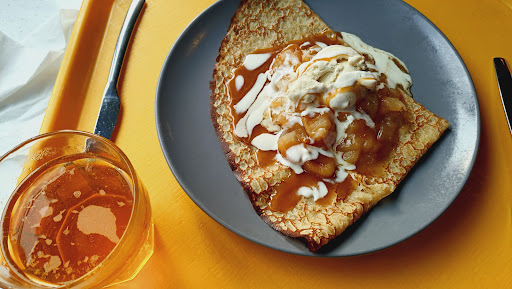 Agréablement surprise... Le choix s'est fait sur le rapport qualité prix entre tous les autres restaurants du parc. Celui-ci à le mérite de proposer des formules Plat-Dessert et boisson, qu'il faut rajouter à l'addition des autres restaurants proposant des formules. Le choix y est varié car il y a même un formule salade. 2 formules avec galettes, 1 à 13,90€ et l'autre à 14,90€. 1 formule salade avec du choix (j'ai pris la saumon fumé et mangue, je m'attendais à des mangues en boite et bien pas du tout, les mangues étaient fraiches et très bonnes...) à 14,90€ 1 formule enfant avec galette, crêpe dessert et boisson aussi et ils sont très bien servis... Le personnel est très agréable et nous sommes tombés sur un charmant monsieur à la préparation des dessert qui était très aimable et souriant... Alors cette, il faut aller se servir après la commande passée avec son plateau et ses couvert mais quand vous manger dans un cafétéria, c'est le même principe et personne ne s'en plaint... Et dans tous les restaurant du parc, le principe est le même, pas de service à table... Donc au final, si nous devons retourner au futuroscope, nous y retournerons les...
