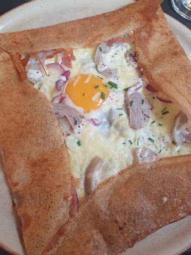 Nous avions regardé les avis avant de venir dans votre crêperie trouvée par hasard sur le Net.. C'est vraiment excellent.Nous avons pris le menu.De la cassolette chèvre ( une tuerie), salade kebab, crêpe norvégienne ( délicieuse),crêpe andouillettes ( extra)aux desserts ( l'extase), nos papilles gustatives ont perçues les saveurs dans vos plats! Vous l'aurez compris nous avons adoré et pourtant nous sommes difficiles en matière culinaire..Certaines crêperies en Bretagne ne vous valent pas 😉Les 400 kms qui nous séparent ne nous empêcheront pas de revenir,surtout avec des amis qui habitent votre ville mais ne connaissent pas votre restaurant, nous leur en avons parlé.A bientôt 😀 voire très prochainement c'était en juillet 2023 Nous revoilà aujourd'hui 16/08/2024 pour nos 27 ans de mariage, entrain de bifurquer de l'autoroute direction bordeaux pour venir dîner chez vous. Merciiiiii Cédric patron et excellent cuisinier de ce restaurant où il faut vraiment aller, déguster ce menu bien rassasiant cassolette de chèvre, galette du chef et crème...