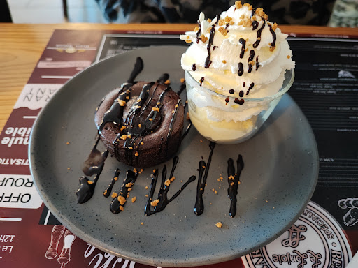 Stopped while shopping in Poitier and we really enjoyed our burgers salad and sauteed potatoes, They were actually very generous chunks of steak in a delicious cheese and garlic sauce. Portions were very generous indeed and cooked beautifully. Lots of free parking, a smart, clean interior and very pleasant staff. Well worth the price and the trouble negotiating the tricky road layout. Not the fault of the restaurant was difficult to find due to the road layout when following GPS. A sign off the main road just before the tower on the right would be really helpful. Thank you for the lovely lunch and...
