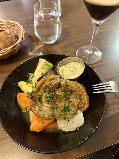 My colleague and I really enjoyed our experience here. Really great food for a very reasonable price, and our server was absolutely fantastic. Our French is terrible so he was incredibly helpful in helping us pick out our entree, and he also had a fantastic sense of humour, especially when I tried to order a "well done" steak... in France... haha! He showed us their amazing underground wine cellar where they do wine and food tastings, only wish we were staying longer so we could go back....