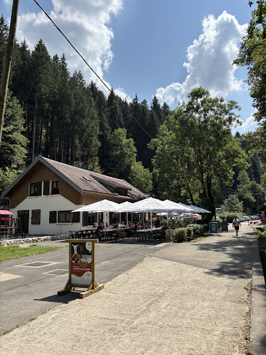 Un lieu pratique car juste avant la cascade, le service est trĂšs agrĂ©able. On nous a annoncĂ© une trĂšs longue attente mais finalement en 10 min on s est occupĂ© de nous pour passer commande. La salade du pĂȘcheur est Ă dĂ©conseiller, nous pensions nous rĂ©galer avec mon mari, quelle dĂ©ception: la salade en elle mĂȘme pas trĂšs belle.... et quasiment que ca dans l'assiette, 5 Ă 6 mini bouts de truite qui se battent sur la salade, l Ă©quivalent d une petite boule de glace de rillettes et de terrine qui par contre Ă©taient trĂšs bonnes. Mais Pour 16,50e, c est du vol! Les glaces de la ferme sont trĂšs bonnes.