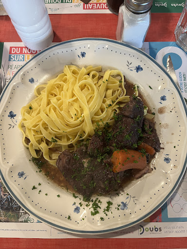 Read moreJ'y suis allée pour manger un plat de notre bonne gastronomie traditionnelle française et je n'ai pas été déçue. A mon âge, je mangeais plutôt ça chez ma mère et je continue de cuisiner ces plats goûteux et réconfortants. J'ai pris un jarret de porc, excellent! Assiette copieuse et les desserts sont faits maison! Le menu du jour est plus passe partout, pour 15€, c'est parfait! Seul bémol, salle petite, il faut réserver et on est un peu serrés. Victime de...