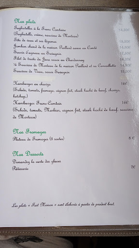 Nous sommes venus avec le passeport gourmand et nous avons pris le menu à 21€ qui, sur la carte, semblait alléchant. Les champignons de la croûte aux champignons ne semblaient pas frais, sauce un peu trop liquide et moi qui me faisait un plaisir de manger une croûte, elle n’était pas fameuse. Concernant le plat, jambon fumé chaud-rosti-salade, le jambon était un peu gras (on va dire qu’il s’agit bien d’un porc franc comtois réputé gras pour nos saucisses régionales) mais tendre à la fois avec une très bonne sauce qui accompagnait, UN rösti qui semblait plus industriel que frais avec un goût de friture bien prononcée, une salade cuite par la sauce et noircie. Quand on fromage, nous savons que la majorité des fromages doivent être servi à l’avance : malheureusement comté, morbier et metsi était froid (sachant que sur les sets de table étaient écrit que « le comté doit être servi entre 15 et 18 degrés »). Étant au pays du comté, celui ci était trop jeune pour nous faire savourer toutes ses notes. Pour les desserts, la tarte aux noix de pécan...
