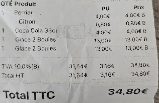 Les prix sont au niveau de la Suisse, voire même au-delà car pour 13 Euros on a plutôt 3 boules de glace... Un Coca-Cola 4 euros.