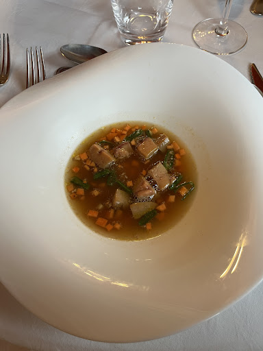 Arrivés à 20h après un apéritif en terrasse, nous avons attendu un bon moment avant que quelqu’un ne prenne notre commande. Nous avons opté pour deux menus "Plaisir" à 50 euros. L'entrée, un morceau de foie gras, était agréable, bien que copieux. Mais c’est là que notre mauvaise expérience a commencé.