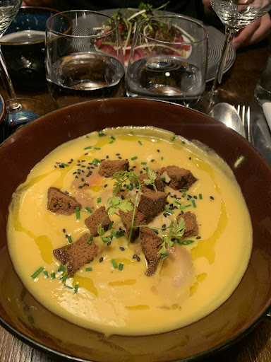 Read moreEnjoyed the food and friendly service. However the drinks were unreasonably expensive.. 5.85£ for a small Kir, 8.55£ for a small glass of white and 7.55£ for a small glass of rose. Will est there again for sure, but will check carefully before buying drinks. It cost us 35£ each without dessert or coffe. Considering it was lunchtime,...