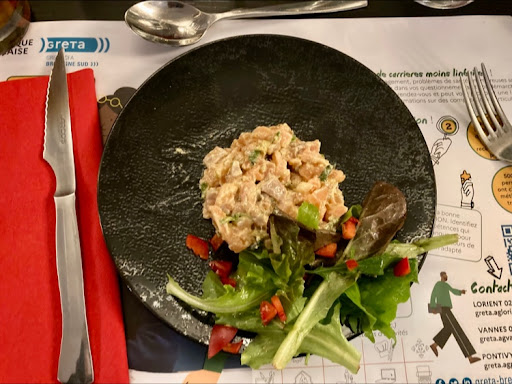 Read moreSi vous aimez la viande c’est peut être la bonne adresse : deux des mes amis ont été satisfaits de leur choix. Mais moi même et un autre convive avions choisi le thon mi cuit légumes wok. Le thon extrêmement salé était immangeable ! Les légumes wok en fait étaient de la mauvaise ratatouille insipide…(cubes de courgettes en sauce non croquants). Grosse déception. Lorsque nous avons dit au serveur qui était surpris de voir nos assiettes à moitié finies, que le thon était vraiment trop salé avec un fort goût de saumure, ce dernier a semblé étonné. Je lui ai expliqué que le thon mi cuit est un thon FRAIS et non pas saumuré (d’où le goût particulier très salé), le même serveur m’a affirmé que non c’était du thon frais…Du coup devant cette mauvaise foi affichée, nous n’avons pas fait de commentaires sur les légumes wok pour éviter un scandale. Compliqué quand on est à Pontivy d’avoir du thon frais peut-être… ??? dans ce cas supprimez le de la carte… Même sans cette histoire de thon, le serveur n’était pas très agréable, poli certes mais pas très engageant. L’impression de déranger même à la prise de...