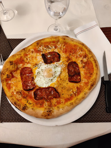 Read moreNous sommes venus pour manger une pizza et n’avons pas été déçus. Pâte fine et cuite comme il faut. La garniture juste ce qu’il faut pour apprécier les ingrédients. La carte des pizzas est minime mais suffisante pour faire son choix. L’attente légèrement longue alors que nous étions les premiers, ce qui nous a laissé le temps de boire notre apéritif. Nous avons choisi le tiramisu en dessert, très léger (crème montée très aérienne très peu sucrée et gâteau imbibé sans trop de café). Nous avons passé un agréable moment. La salle du restaurant du bas est petite mais nous n’avons pas visité celle du 1er étage. Quelques améliorations à apporter pour le remplissage et le nettoyage des bouteilles d’huile piquante et...
