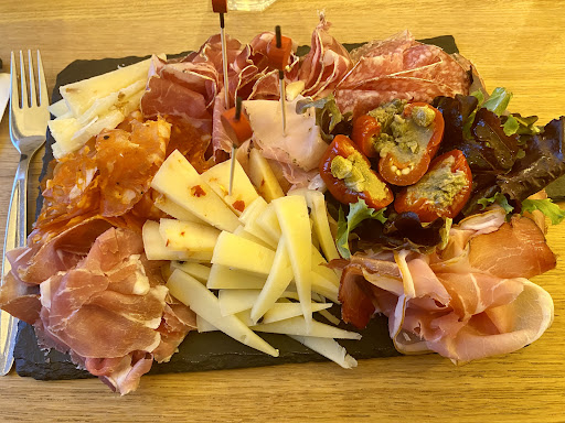 En passant la porte d'entrée, une étale de charcuterie, fromage, ravioles, pùtes, etc., nous titille déjà la pupille et le palais. On a déjà envie de tout goûter. DerriÚre se cache quelques tables simplement décorés dans une ambiance assez chaleureuse qui réconforte. Sans fioriture, ni artifice, l'ambiance est bienveillante. Le personnel est trÚs souriant, trÚs agréable et au petit soin pour leur client. Le repas a été parfait du début à la fin. Les antipasti (légumes grillés) sont a tombés, la mozzarella pareil. Les pùtes cuitent aldente a la crÚme d'oignons une petite merveille. Le dessert nous a littéralement achevé ma compagne et moi car il était tout simplement succulent.