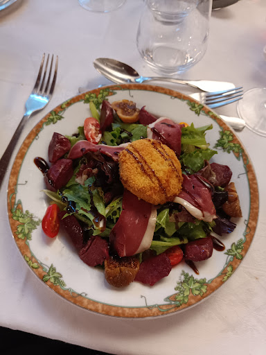 Read moreNous somme allé dans ce restaurant confiant avec les avis positifs.... La façade ne donne pas envie d'y rentrer et une fois dedans l’ambiance et la déco sont plus que d'un autre temps. Donc on commande, déjà le choix des menus est compliqué la serveuse a dû nous expliquer plusieurs fois. Y a un menu à 33€ avec vin et eau comprise et un menu gastronomique à 38€, moi je veux me faire plaisir avec ce menu mais impossible car le menu à 33€ n’est servi que si toute la table le prend (question si on mange seul on fais comment?) comme raison la serveuse me parle du vin qui doit être pour toute la table...donc je prends aussi le menu à 33€ et là on nous ramène 2 bouteilles de vin (rouge et blanc) je ne vois pas l’intérêt, une bouteille par personne ca fais beaucoup…Bref j’ai toujours pas compris le fonctionnement des menus. Donc on attaque l’apéro accompagné de roulés de saucisse bon, mais de roulés au fromage et mini pizza qui devaient avoir déjà quelques jours. En entrée je prends une crème brulée chorizo tomate : bonne, ma femme voulait la même sans chorizo étant végétarienne mais impossible car la serveuse nous dis que c'est préparé avant (...ça donne envie..), donc ma femme commande une espèce de vérine géante remplie d'avocat et d'autres trucs vraiment indigestes. Le plat principal un curry de saumon présenté comme excellent par la serveuse...des bouts de saumons surement décongelés un risotto beaucoup trop cuit et comme fruits de mer des minnnnnnnis crevettes d'une provenance douteuses donc pour un plat de chez Flunch c'est surement bien mais pas dans un restaurant se voulant gastronomique. La cerise sur le gâteau...les desserts on commande un soufflet pain d'épice et moi une tarte feuilletée flambée pour cela la serveuse nous préviens il faut attendre......Apres 15 minutes les desserts arrivent....Pour moi une simple tarte aux pomme avec un peu de calva (je pense) dessus avec un gout de brulé car surement recuite et ma femme un super soufflet avec un très beau cheveu dedans :-( on le signal a la serveuse qui ne s’excuse pas, et pourquoi cette attente ??? Bref une seule envie fuir et rentrer chez nous, on demande l’addition et surprise on nous a compté une bouteille d’Evian...et oui notre serveuse nous a imposée de l’eau payante et pas celle comprise dans le menu, on refuse de la payer ce qui est heureusement accordé après ce repas désastreux.