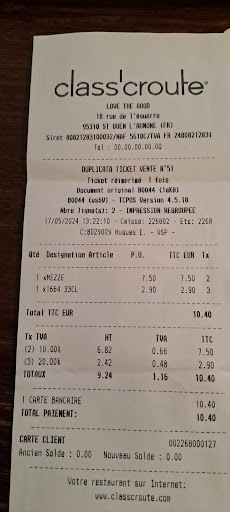 Read moreJe Class'Croute au moins une fois pas semaine, et la semaine dernière, même 2 fois. Accueil sympathique et dynamique, Je peux recommander