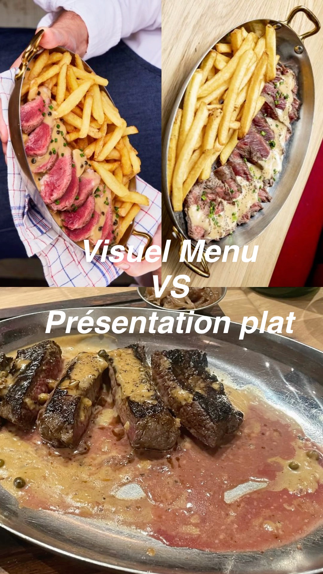 Le véritable problème est apparu avec le steak au poivre de ma conjointe. Le plat semblait particulièrement vide, composé de seulement quatre petits morceaux de viande, bien loin de l’image affichée sur le menu. Interpellés, nous avons demandé une vérification en cuisine du grammage, car après plusieurs expériences dans d’autres restaurants de la chaîne et la lecture des avis d’autres clients, nous avons constaté que ce problème ne semblait pas isolé.