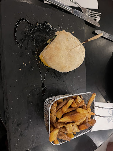 Quand les plats sont finalement arrivés, la présentation était attrayante et le poulet avec sa sauce au foie gras a été un succès. Cependant, j'ai payé 17 € pour un burger que j'avais demandé saignant/bleu, mais qui m'est arrivé à point. De plus, le burger était servi sans salade, le steak était plutôt petit et le plat en général manquait de saveur.
