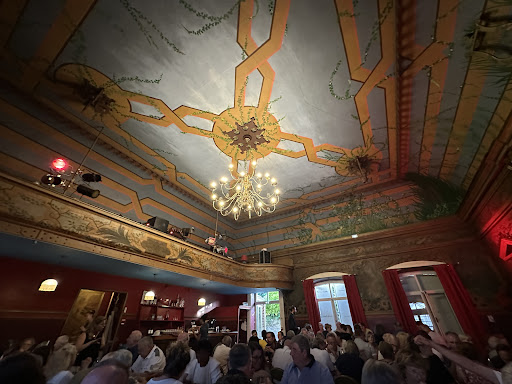Deuxième "visite" pour ce bistrot restaurant, cette fois en version "bistrot/théâtre" pour une soirée one man show (c'est 1 fois par mois - programmation sur le site du restaurant). Le spectacle était super bien (FOSKO, humoriste), j'appréhendais un peu car l'humour, c'est toujours très "personnel"... J'ai beaucoup ri et ce n'était pas vulguaire. Côté repas (on est placés et on dine d'abord), c'était bon et rythmé côté service. Très bien organisé ! La belle salle rétro (à voir !) recevait une centaine de personnes, avec tables façon banquet. Apéro, entrée, plat et dessert + 1 bouteille de vin pour 4 personnes (et café ou thé !), la soirée tout compris pour 45 euros par personne. Vraiment une chouette soirée, sympathique, décontractée et tout près de la maison. Je vous conseille de découvrir la formule bistrot/théâtre ! 👍🏻😉 Vous pouvez également simplement diner dans la salle de restaurant au rez de chaussée. Patron/chef cuisinier et serveurs très sympathiques. Jouy le moutier, joli village en...