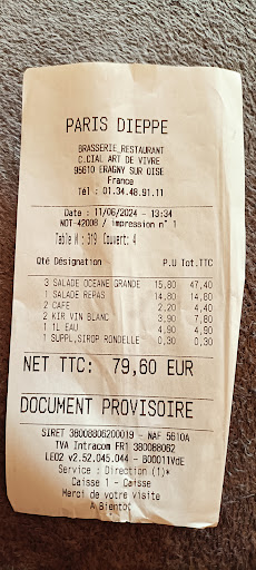Read moreLe mercredi 14 décembre précisément nous nous sommes rendus au Paris-Dieppe pour pouvoir y manger et par la même occasion j'ai pu apercevoir sur une affiche que le restaurant recherchait des serveuses(eurs) étant intéressée je me suis donc présentée à une dame ( coupe courte, blonde et lunette de vue noir ) la gérante je suppose.