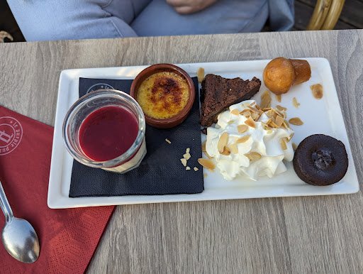 This was a nice stop on the sides of the river. The music was nice, somehow loud though. The same problem with most French restaurants and braiseries is that tables were so close to each other but it was ok as the sound of music masked other sounds. We took dessert only: I took ice cream which was really good (especially the berries) and my wife took the café gourmand, which has become a ritual for us lately. They're generous and every bit was good. We didn't try the food but the plates on other tables seemed intriguing. Will update this if we...